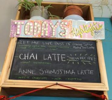 Through my superior research skills (once a librarian, always a librarian, I say) I discovered that the owner of Franny Lou's Porch in Philadelphia, Blew Kind, had found me on the Internet and yes, named a latte after me. I was in good company, along with the Martin Luther King peanut butter latte and the Sojourner Truth vanilla mint latte, among others. Here's what Blew said: